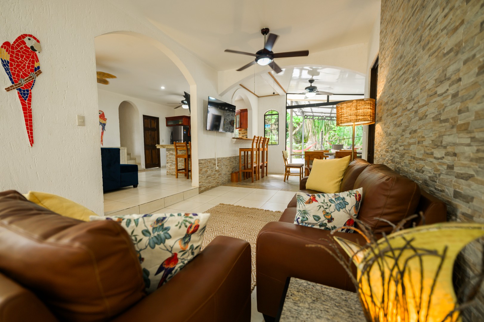 This beautiful jungle-beach surf home features 3 bedrooms and 3 bathrooms, with a