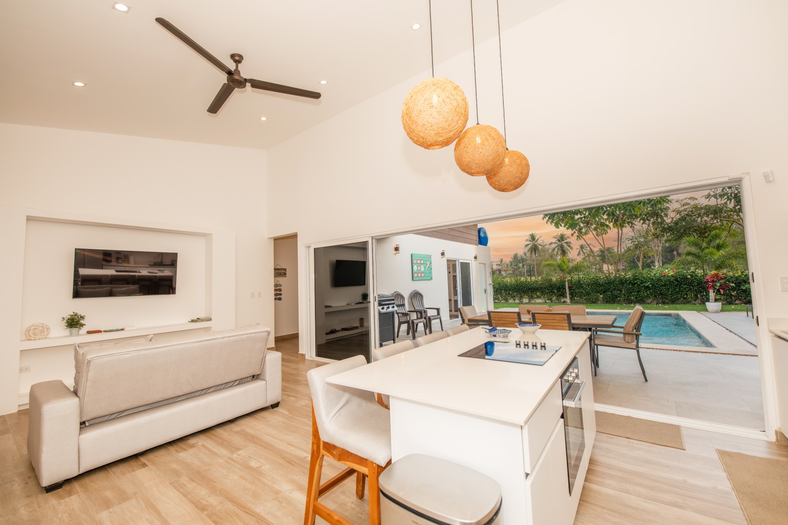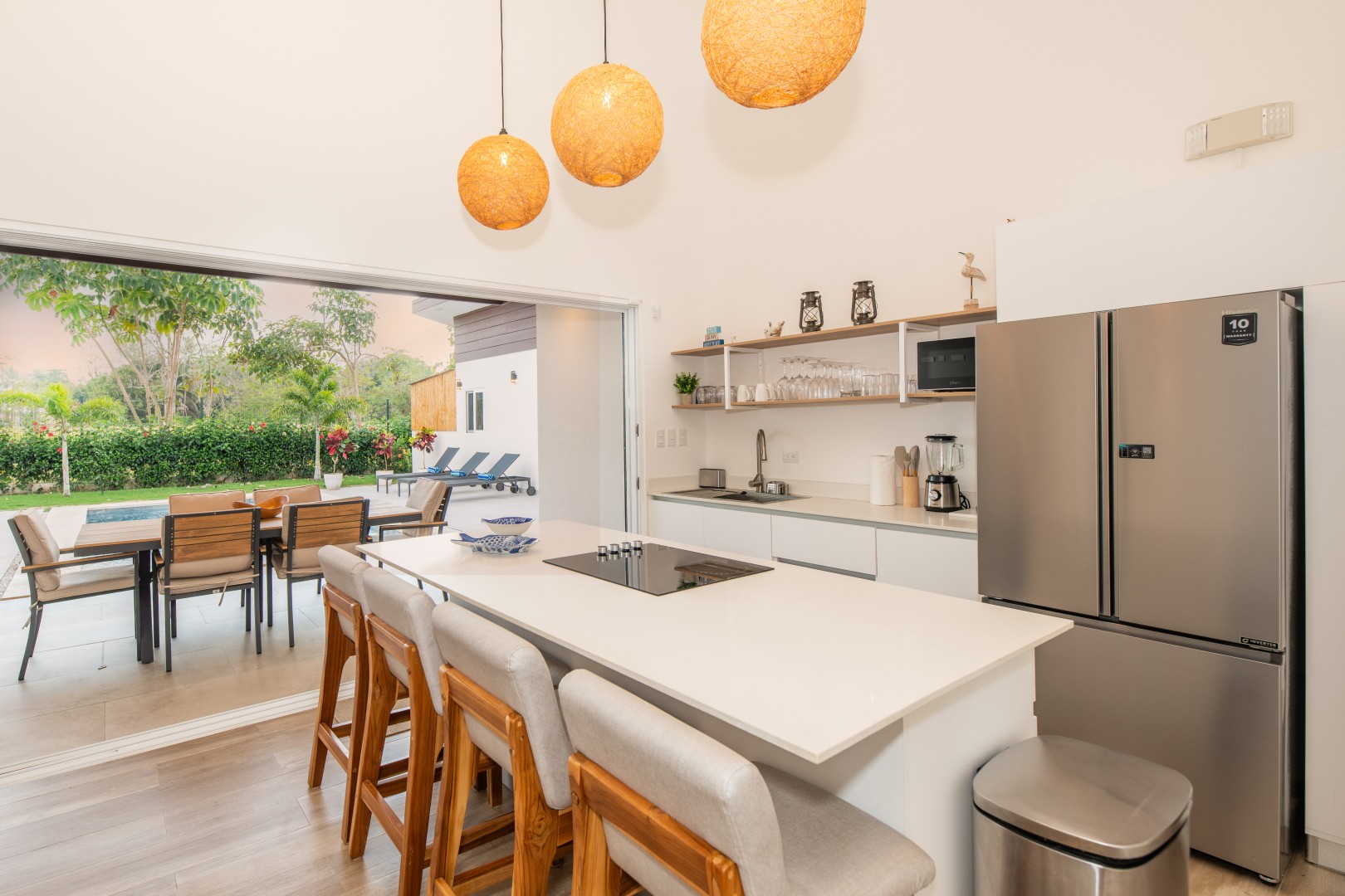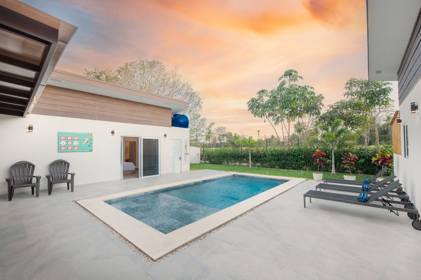 Enjoy this modern house on the Pacific coast of Costa Rica, just minutes from the sea. It offers 4 bedrooms and 4 bathrooms, ideal for groups or families. Fully equipped, with a private pool and grill for unforgettable moments. Surrounded by nature, you can observe local wildlife such as birds and monkeys. Every afternoon offers spectacular sunsets. Located in a quiet and safe neighborhood. There is another villa on the property, so cohabitation rules must be respected.